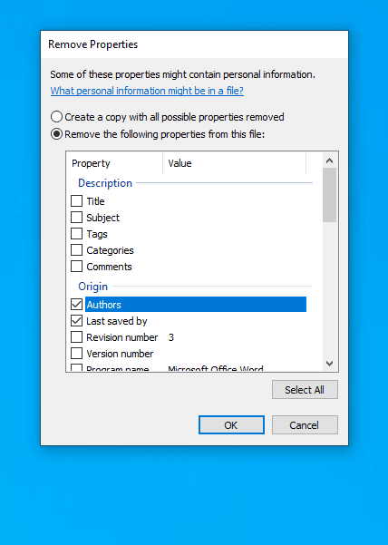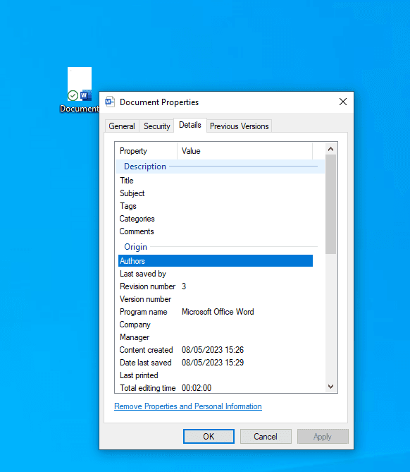 If you are unsure how to remove author details from the document properties, please follow the guide below to remove author details from your (Windows) document.